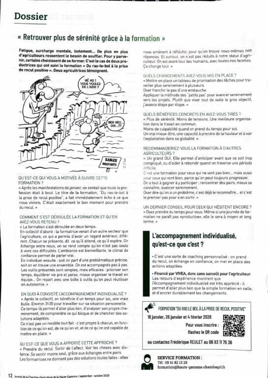 Avec ce dispositif porté par la Chambre d’Agriculture de la Haute-Garonne et animé par Hélène Alauze, l’accompagnement remet l’humain au cœur de la performance agricole.